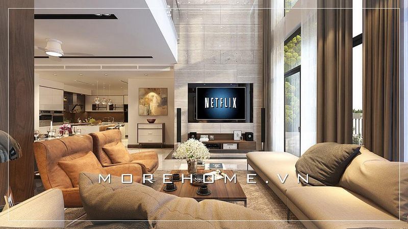 Bố trí nội thất phòng khách trong biệt thự hiện đại, đẹp mắt và tinh tế.
